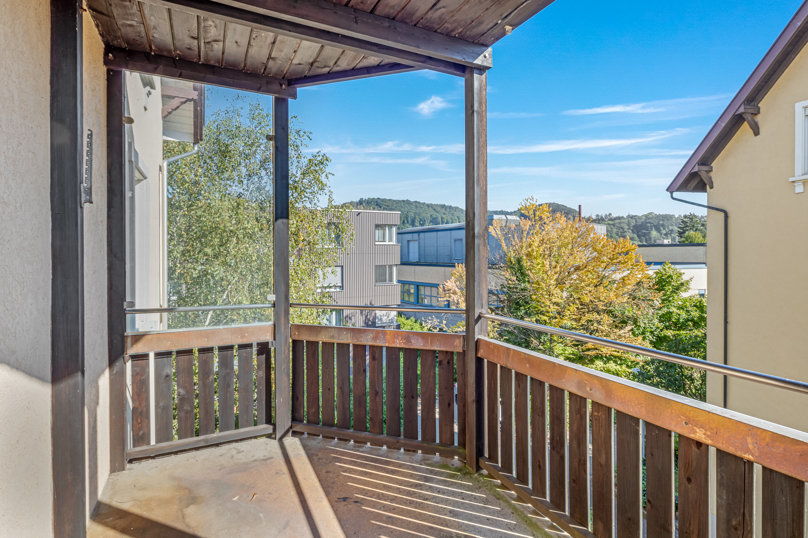 Eckdaten: 3.5-Zimmer-Wohnung, 71 m2 Nettowohnfläche, Wohnzimmer mit Schwedenofen, sonniger Balkon, Raumhöhe 2,60 m